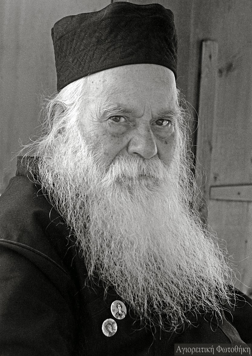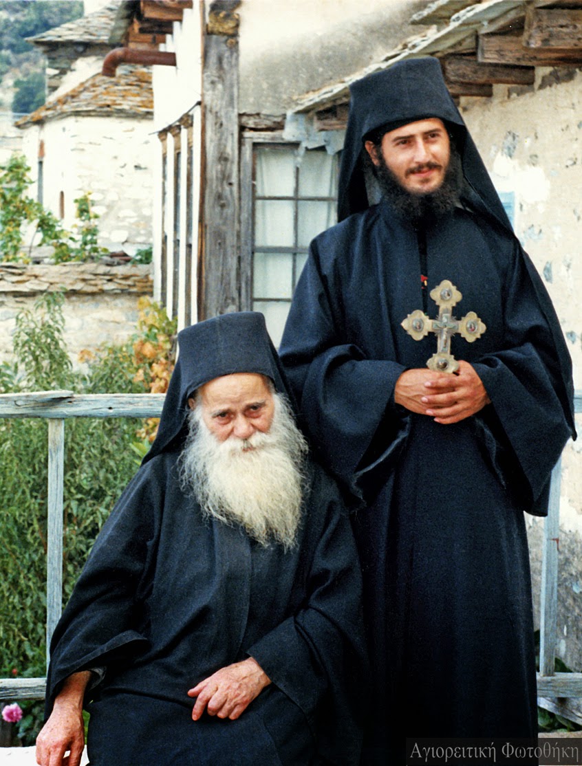 Ctihodný jeromonach Anthimos ze Svaté Anny (1913-1996) se svým poslušníkem