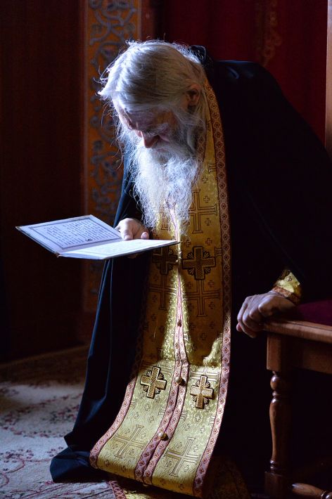 Blahé paměti schiarchim. Ilij (Nozdrin) obklopen dětmi a věřícími