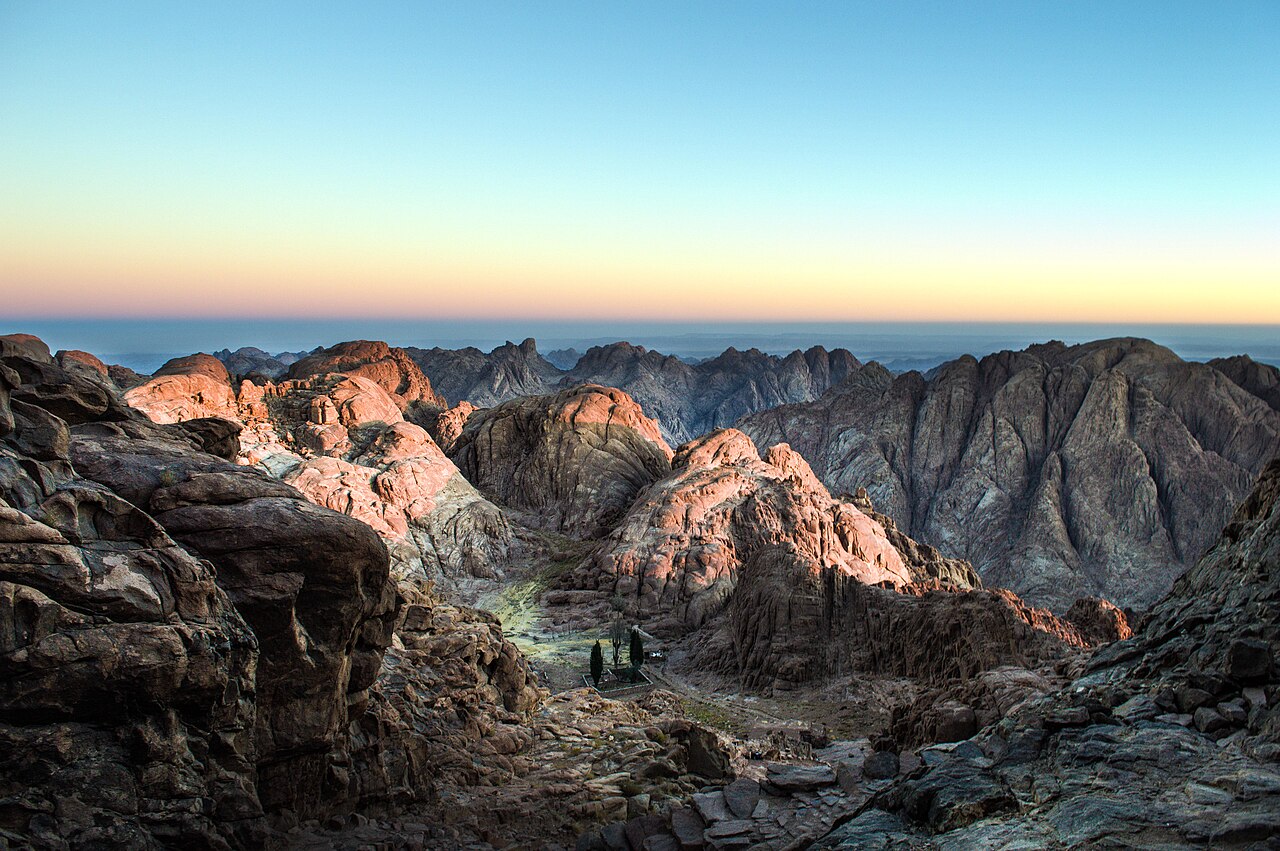 Svatý vrchol (hory Sinaj) neboli Mojžíšova hora (Gebel Mousa) v nadmořské výšce 2285 m je svatým místem, kde prorok Mojžíš přijal od Boha desky Zákona a opakovaně s Ním hovořil. Je to nejvyšší vrchol Chorebu, pohoří, které se tyčí jižně od kláštera svaté Kateřiny.