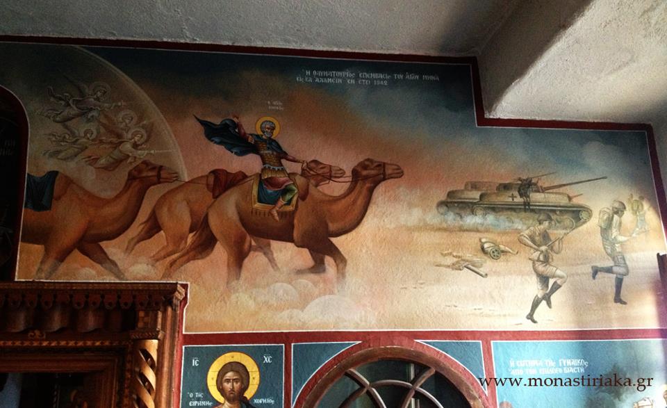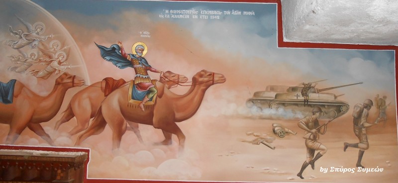 Mezi spojeneckými vojsky byla i řecká armáda, která se bitvy účastnila. Jedné z těchto nocí mnoho vojáků vidělo svatého Minase, jak opouští ruiny svého chrámu, který se nacházel v oblasti, kde se nacházela světcova hrobka, vede karavanu velbloudů a je obklopen anděly a vstupuje do tábora nepřátelských sil.