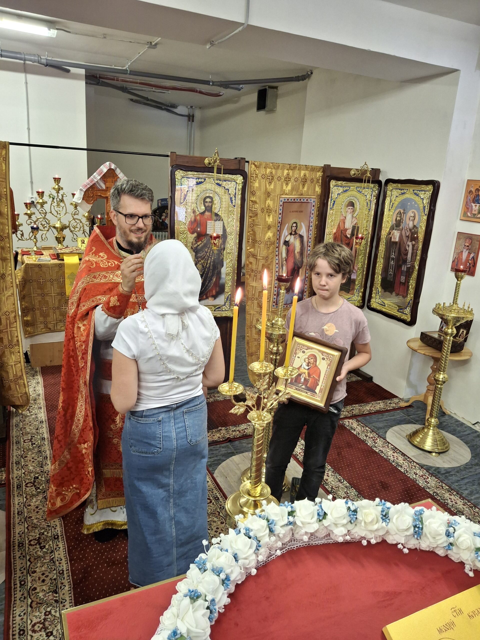 Zástupci Brněnské pravoslavné farnosti (při chrámu na ul. Svatopluka Čecha) předali otci Matfejovi dar od otce Jozefa a našeho církevního společenství v podobě ikony Boží Matky Počájevské, aby také ona našla své místo mezi ikonami svatých v tomto jejich novém chrámovém prostoru a vznášela k Bohu své přímluvy za nás za všechny.