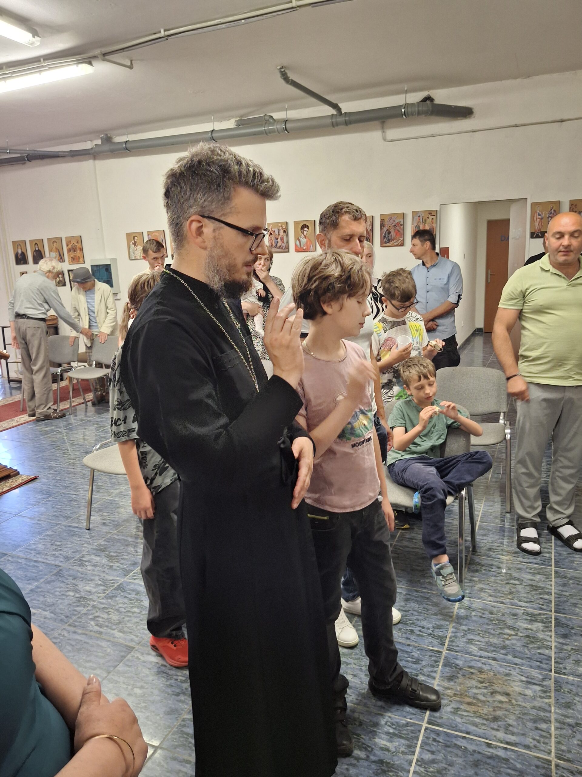 Otec Matfej ve svém soustředěném a dojemném kázání vzpomenul na hlavní aspekty dnešního svátku, který odkazuje k pravoslavné úctě ke všem místním svatým, ať už by byli z jakékoli pozemské části světa či národa. To podstatné je, že jsou vždy na konkrétním místě srdečně ctěni a věřící se k nim obracejí ve svých prosbách a současně skrze ně slaví našeho Trojjediného Boha.