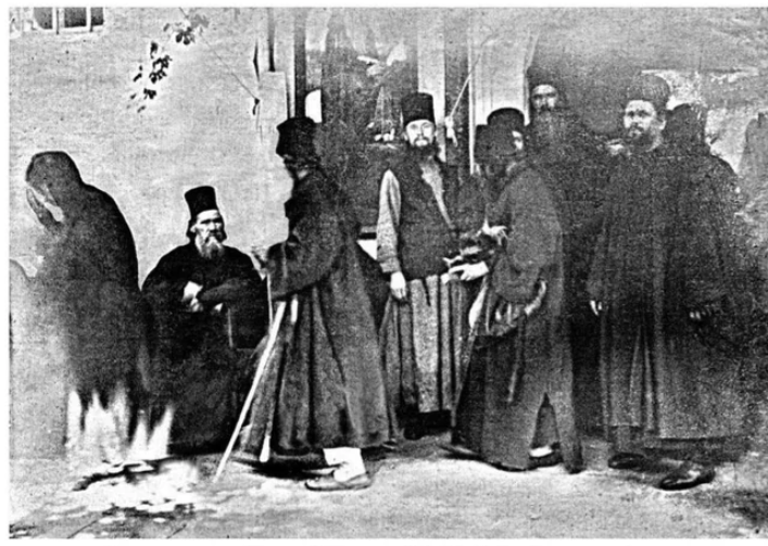 Výše zmíněná fotografie byla pořízena 21. srpna 1903 a v roce 1997 byla publikována podle archivu ruského Svatohorského kláštera svatého velkomučedníka Pantelejmona. Byla pořízena jako pamětní fotografie jednoho starobylého zvyku, podle kterého ruský svatohorský klášter rozdával almužnu chudým mnichům, kteří žili v okolních keliích.